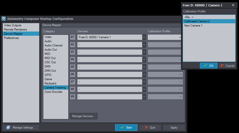 Aximmetry's camera compounds and pre-made projects come with predefined settings to work with mapped devices.