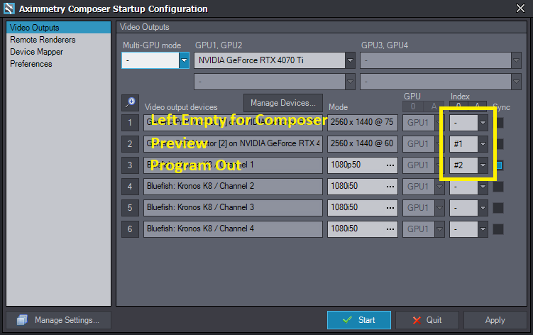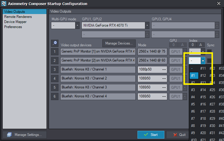 In order to better understand assigning indexed video outputs to output devices, please refer to this article.