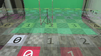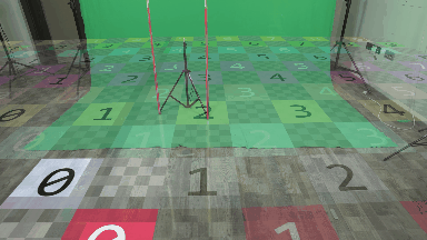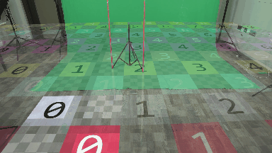 以下のカメラの動き/レンズの調整を実施し、カメラのキャリブレーションをテストしてください。物理的な参照点と仮想的な参照点(マーカー)の相対的な位置は、互いに変化してはなりません。つまり、一緒に移動する必要があります。