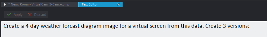 この例では、「Easter News」というテキストを「Aximmetry News」に置き換えるだけの変更であるため、コンパウンドには次のような指示を設定します: