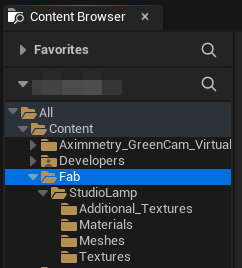 アセットは、開いているプロジェクトのContentフォルダ内のFabフォルダ下に自動的に配置されます。