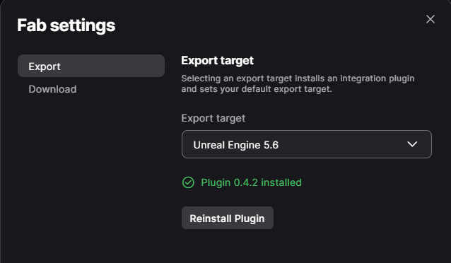 次に表示されるウィンドウで、Fab Launcher Pluginがインストール済みであることを確認してください: