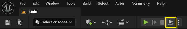 ライブ同期実行中、あるいはAXシーンエディタのみが開いている状態でも、シミュレートカメラモードを使用してAximmetryのカメラから切り離し、移動操作が可能です: