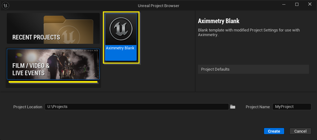 このドキュメントでは、AximmetryでUnrealプロジェクトを開き、作成し、実行するために必要な手順を説明します。