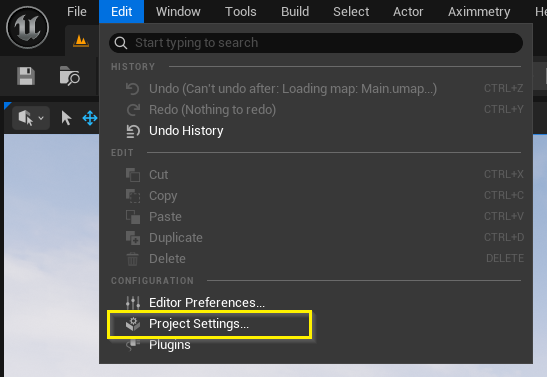 Aximmetryでのプロジェクト設定