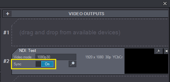 ビデオ出力にNDI接続が設定されています。レンダリング(キーイングを含む)が同一フレームレートで行われるよう、同期に設定してください:
