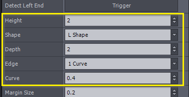 Edge: 1または2のカーブに設定可能。カーブは床と壁の間の遷移を定義します。2つの曲線に設定すると、床と壁の間により不規則な曲率を定義できます。2曲線モードでは、最初の曲線値が床面の曲率長さを決定し、2番目の値が壁面沿いの長さを決定します。