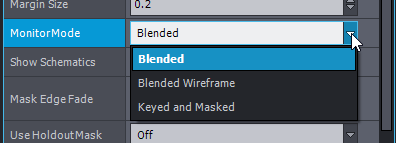 ブレンドワイヤーフレーム表示: ブレンド表示に加え、緑色領域のモデルのワイヤーフレーム(頂点)を重ねて表示します。例えば、グリーンスクリーン領域のカーブパラメータを正確に定義する際に役立ちます。