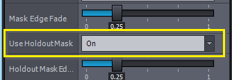 Use HoldoutMaskを有効にすると、Holdout Mask Edge Fadeパラメータが表示されます。Mask Edge Fadeと同様に、このパラメータはキー処理された部分とされていない部分の境界を滑らかにします。また、キーイング処理で発生するDespillのエッジも滑らかにします。