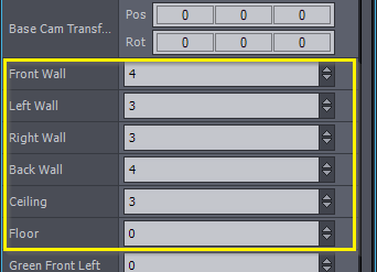 ベースカメラ変換は壁パラメータと組み合わせて使用するのが最適です。これにより仮想壁を個別に配置できます。これらのパラメータはメートル単位で測定され、カメラの視点に基づいて命名されています。