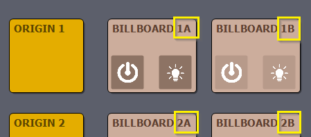 - 最初のヘルパーグラフィックは、タレントトラッキングシステムのトラッカーの正確な位置を点としてマークします。付随するテキストラベルにはビルボードのIDが表示されます。