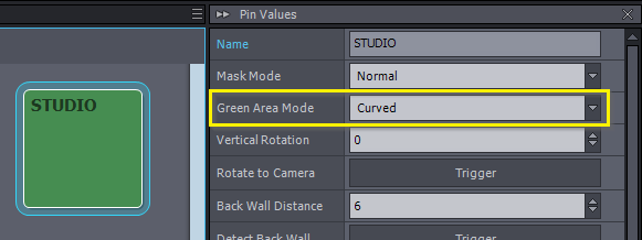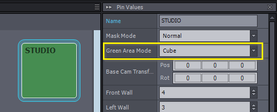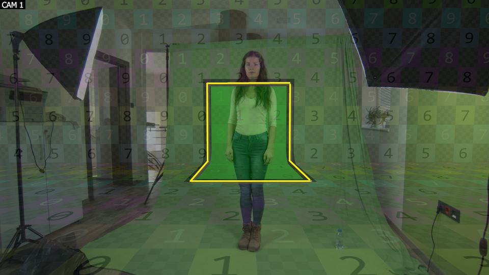 グリーンエリアのパラメータを使用して、グリーンスクリーン領域の正確な形状と境界を定義します。定義されたグリーンエリアの外側は、デフォルトの通常マスクモード使用時に、入力(実世界のカメラ)から切り取られます。