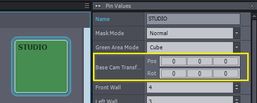 ベースカム変換パラメータにより、すべての仮想ウォールの方向を、現実世界の物理スタジオに合わせて調整できます。