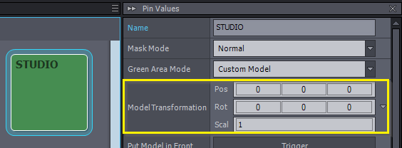 通常通り、STUDIO コントロールパネルを選択すると、画面の右側に調整可能なパラメーターがPin Values パネルに表示されます: