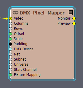 Aximmetry内でネイティブにピクセルマッピングを実行することも可能です。その目的には、ヘルパーコンパウンド[Common]:Compounds\DMX\DMX_Pixel_Mapper.xcompを使用してください。