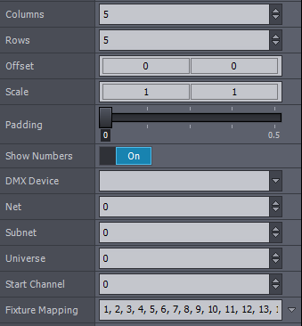最初のステップはフィクスチャマトリックスの列数と行数を指定することです。一般的にこれらのデバイスは5×5フィクスチャですが、4×1のような単一行の場合もあります。