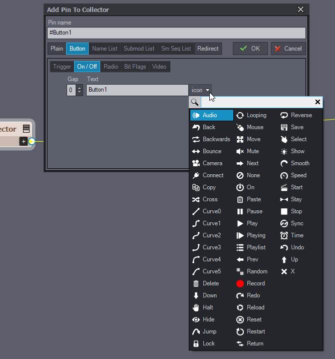 Aximmetry コントロールボードでボタンを定義する際、固定セットからアイコンを追加できます。