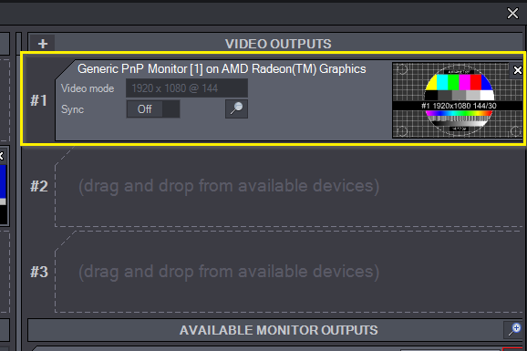 右側に表示されている動画が、アクティブな出力に接続されているとは限りません。