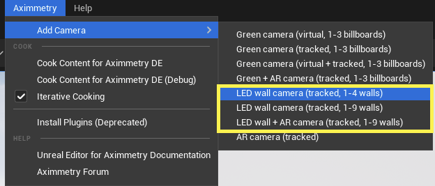 注: Unrealプロジェクトに以下のカメラのいずれかを追加し、Aximmetry用にコンテンツをクックしてください: