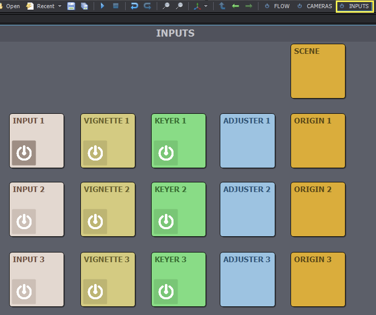 INPUTS制御ボードに移動すると、以下のコントロールパネルが表示されます: