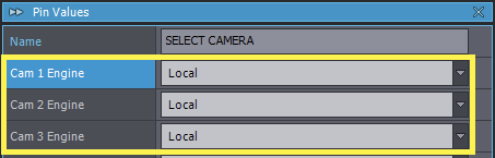 Pin Valuesパネルで、Cam X Engine ピンを探し、選択したカメラのレンダリングに使用するリモートマシンを選択します: