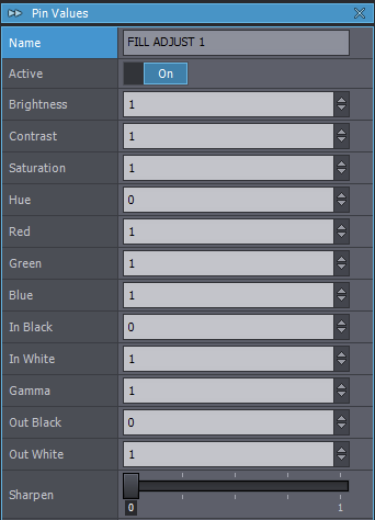 FILL ADJUST Xコントロールパネルを選択後、Pin Valuesパネルに移動すると以下のピンが表示されます: