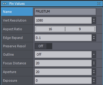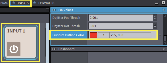 その色はINPUTS制御ボード/INPUT X制御パネル/Frustum Outline Colorピンで調整可能です: