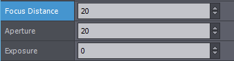 名称が示す通り、これらは仮想カメラの焦点距離、絞り値、露出量を表します。
