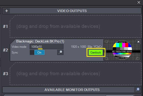 To genlock the video output in Aximmetry, connect your capture card to the genlock signal.