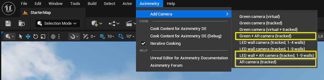 NOTE: When using one of the +AR cameras, you still need to set up all the AR-related Unreal project settings.