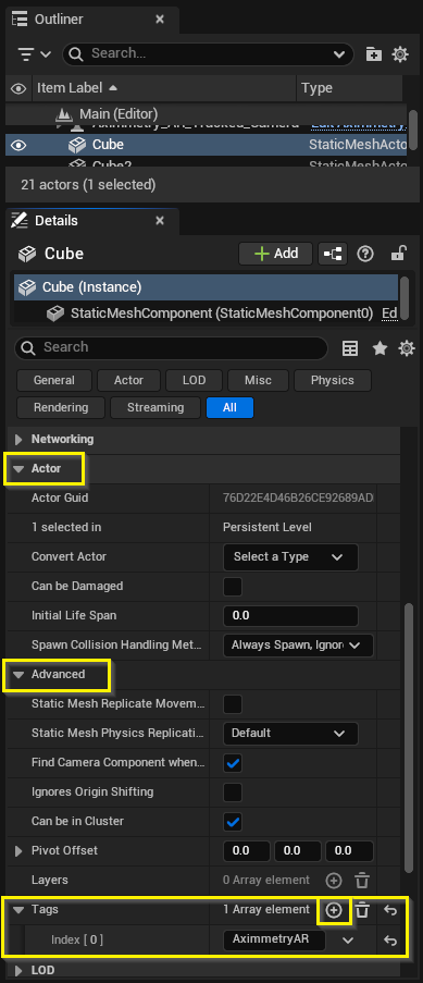 To mark an object for AR rendering, simply assign the “AximmetryAR” tag to it.