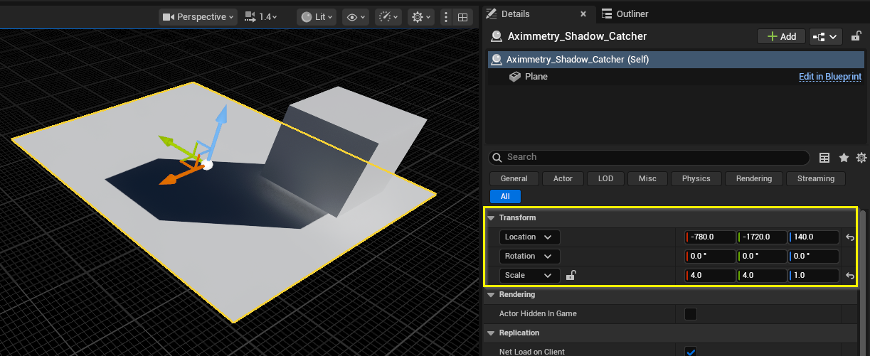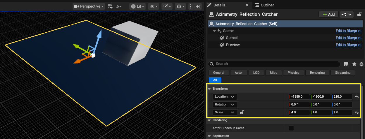 Once you have added the Reflection Catcher to your Unreal scene, you are free to modify its transformation to your liking: