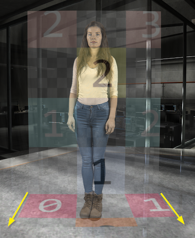We suggest placing the billboard a bit in front of the feet of the talent, considering their movement towards and away from the camera. See example:
