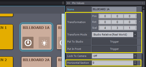When the Put To Studio trigger is pressed, the Billboard is automatically placed at the center of the Studio's green screen area by overwriting the Transformation parameter.
