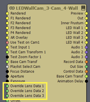 There is one Override Lens Data pin for each INPUT on LEDWallCam compounds: