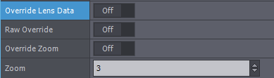 By enabling this parameter, you can manually override the Zoom value of the incoming lens data by adjusting the value of the Zoom pin under the Override Zoom pin.