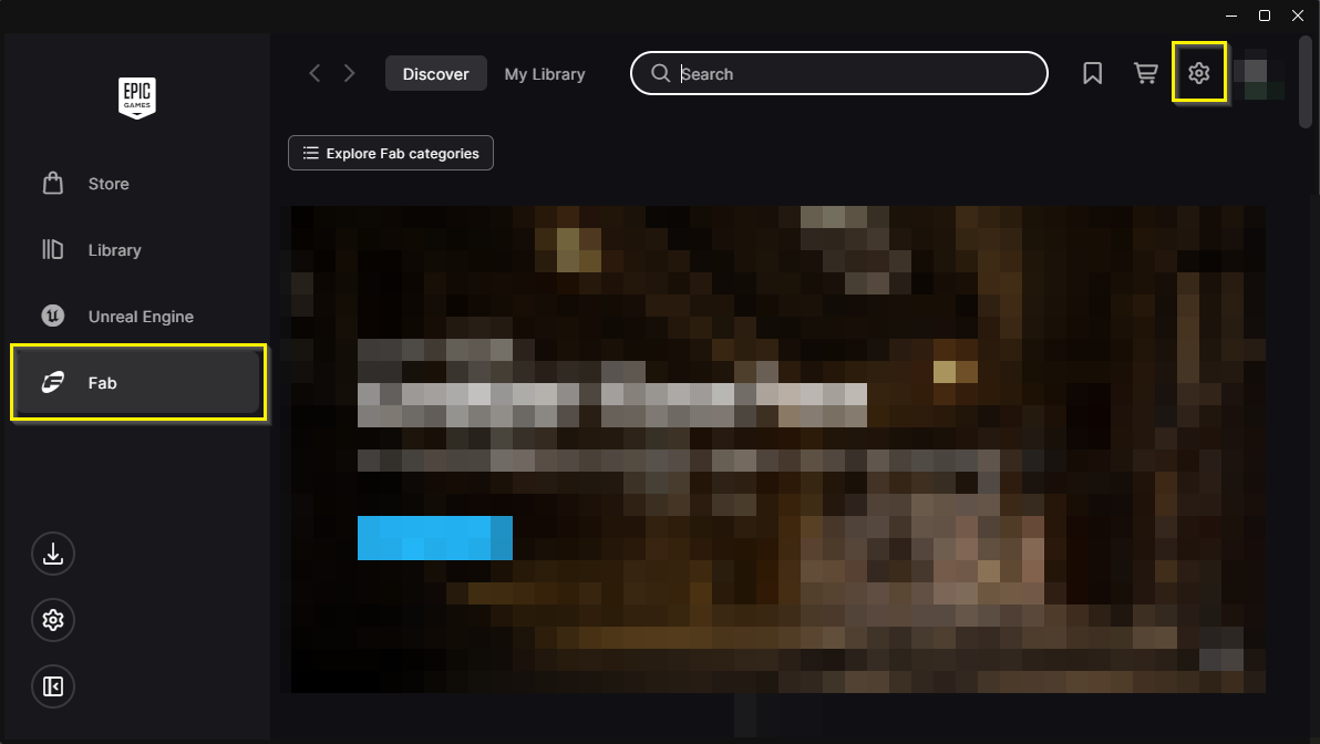 Open the Epic Games Launcher, click on the Fab tab, then click the gear (settings) icon: