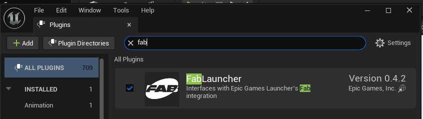 Then, in the subsequent window, ensure the Fab Launcher Plugin is installed: