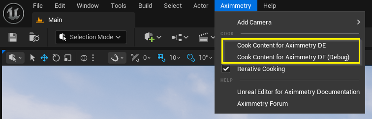 Aximmetry uses the cooked version of the project, which is generated when you select Cook Content for Aximmetry DE from the Aximmetry menu in Unreal Editor: