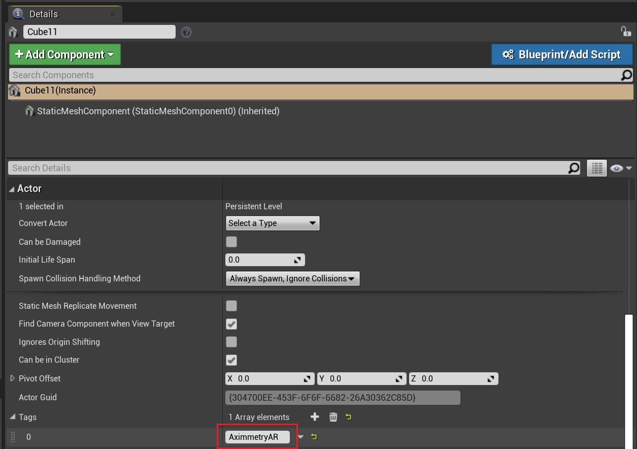 To mark an object for AR rendering, simply assign the “AximmetryAR” tag to it.