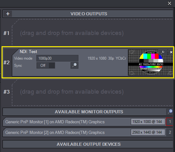 NOTE: Dragging and dropping the NDI into the Video Inputs slot above will result in it being a mapped device.