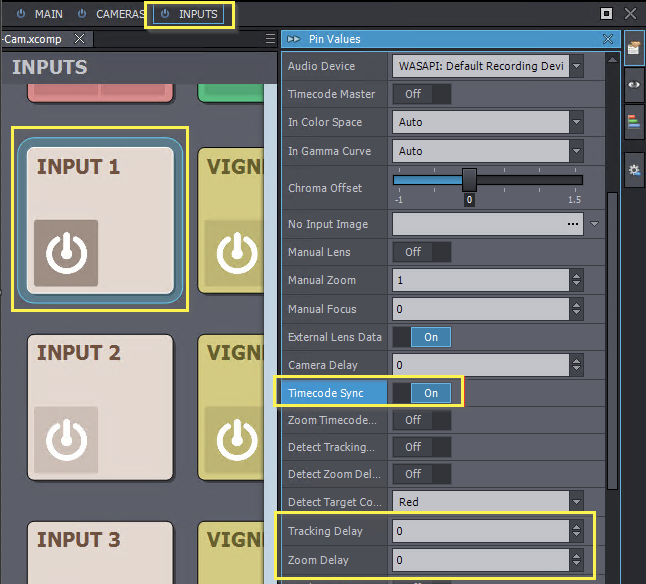 NOTE: VIDEO INPUTS and CAMERA TRACKING panels are created and removed in pairs, as they are usually used in pairs. This keeps working with them a bit more straightforward. If you don't need camera tracking, simply leave the Tracking device and/or Zoom device empty.